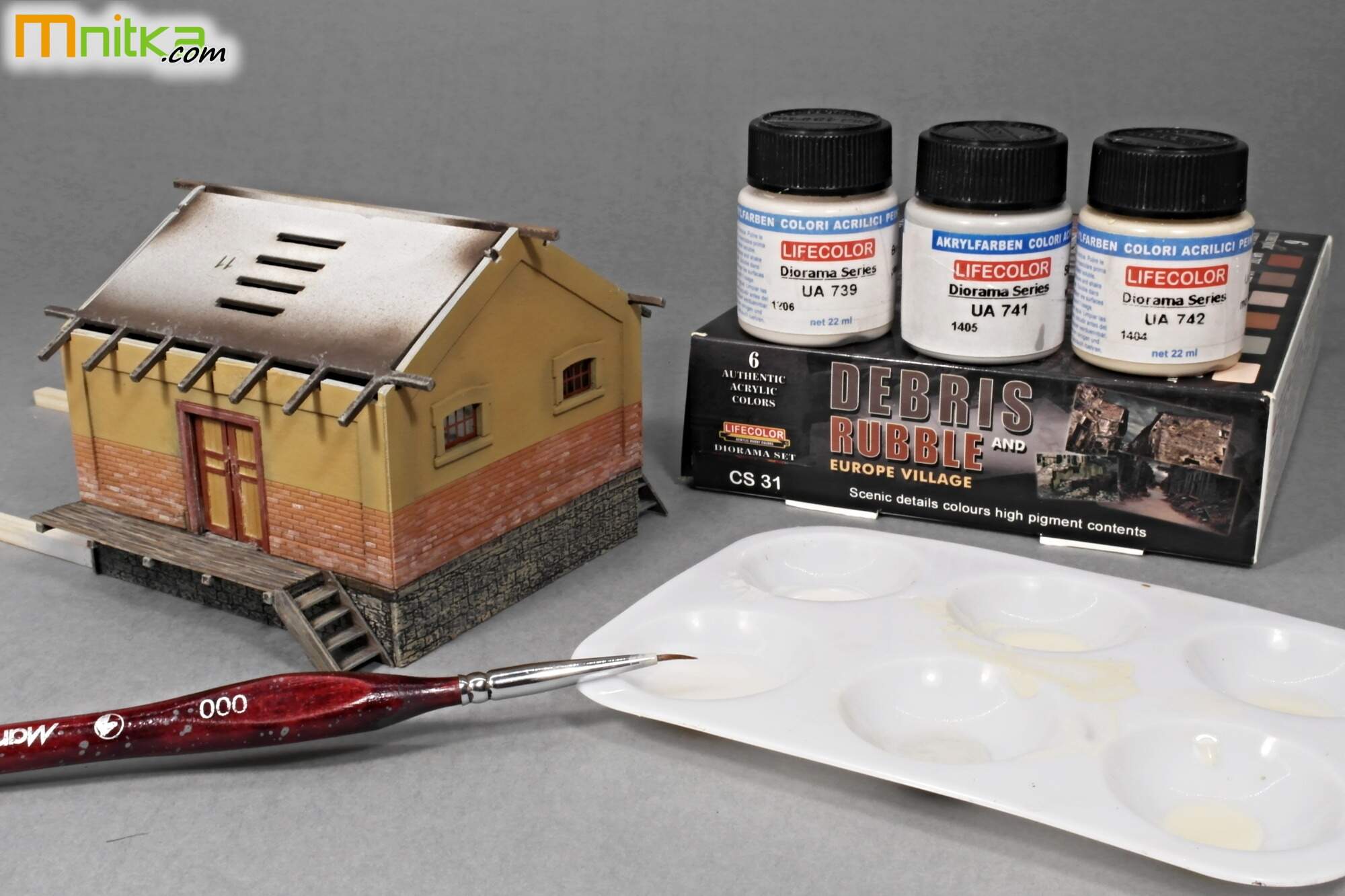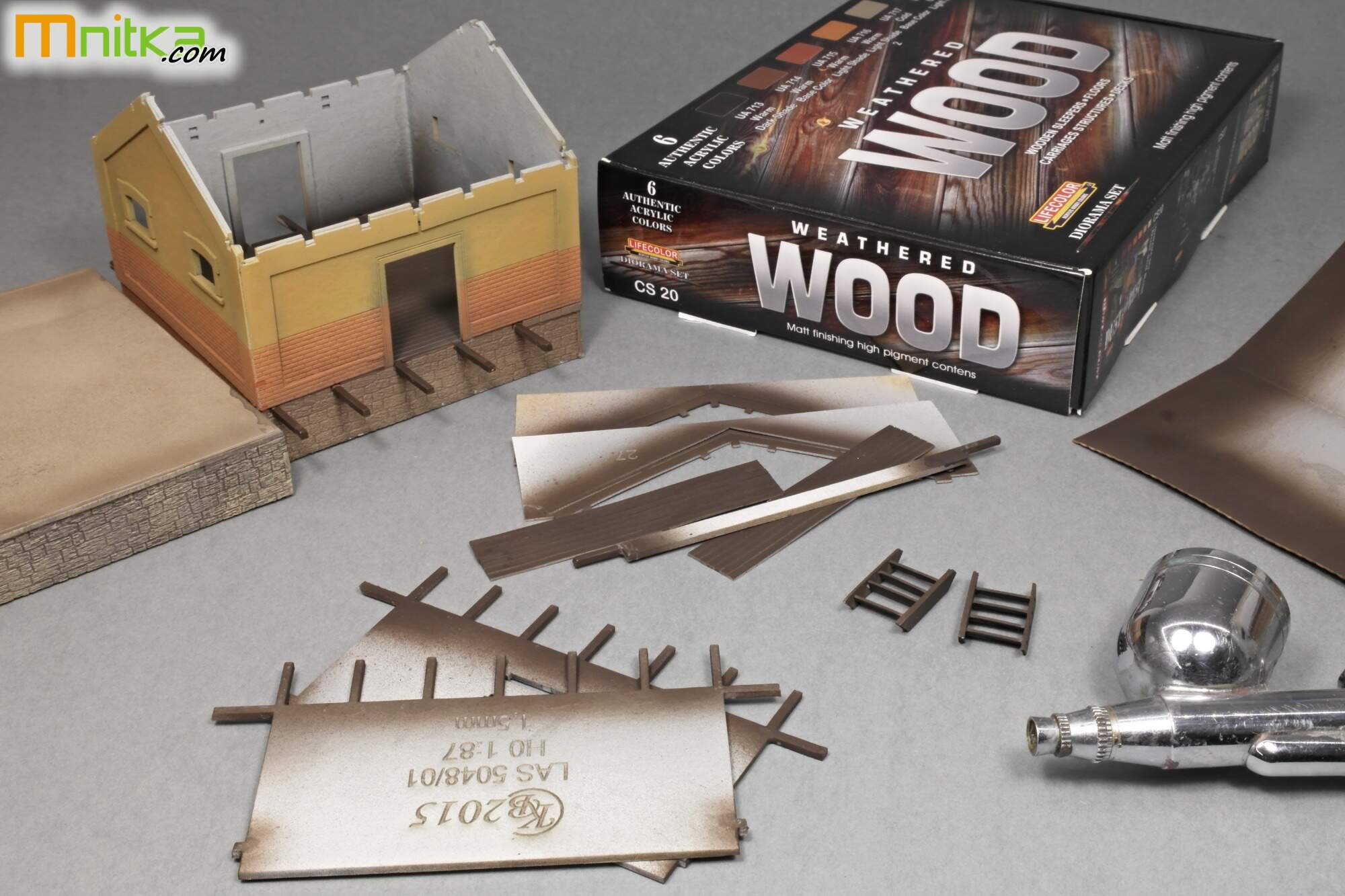 Všechny dřevěné části byly natřeny nebo nastříkány barvou UA713 ze setu barev LIFECOLOR CS20 WEATHERED WOOD.
