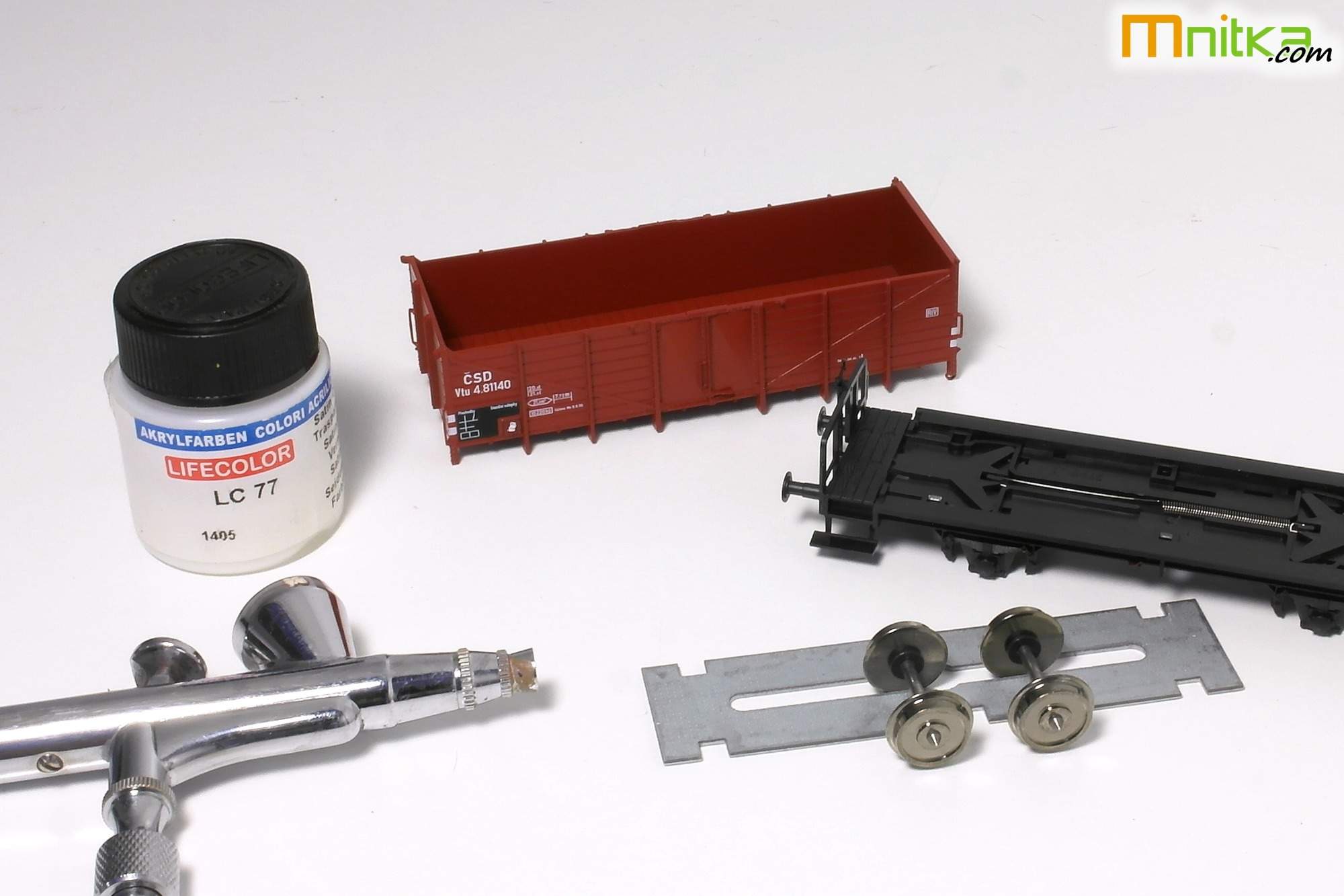 Podvozek a skříň vozu jsem nastříkal polomatným lakem LC77. Lak je třeba nechat dostatečně vytvrdit, nejlépe do druhého dne.
