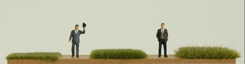 nanesená travní vlákna zleva 2mm, 4,5mm a 6,5mm, figurky jsou ve velikosti HO